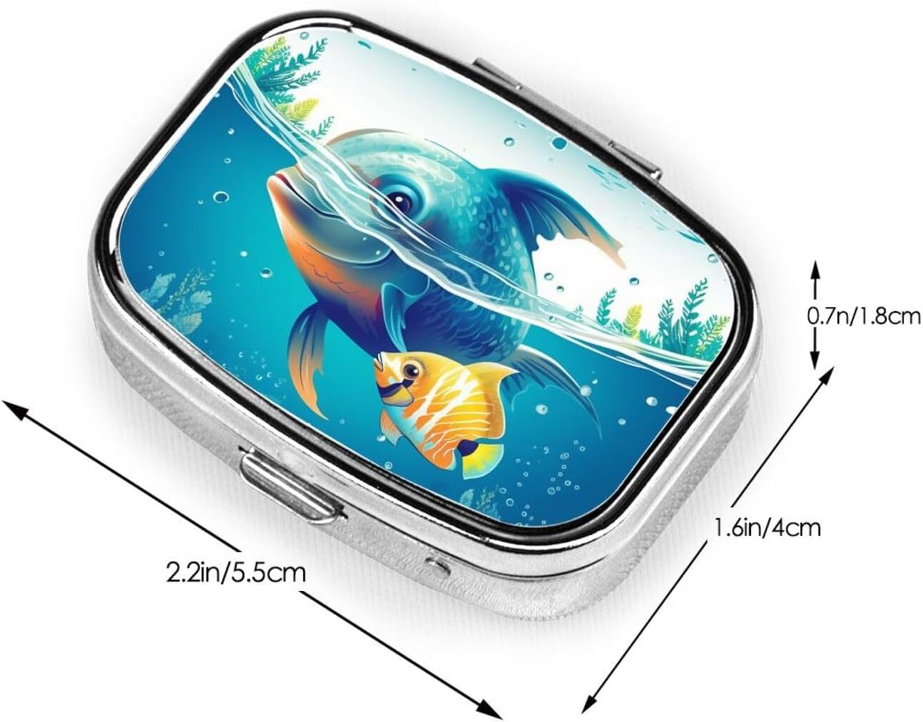 Portable & Practical: This square pill organizer Underwater Sea Fish pill container holder is small in size and light in weight, measuring 2.2 x 1.6 inches, could fit right in the palm of your hands. Perfect to put it in your purse, travel bag, briefcase or the back pocket of your jeans for daily meds