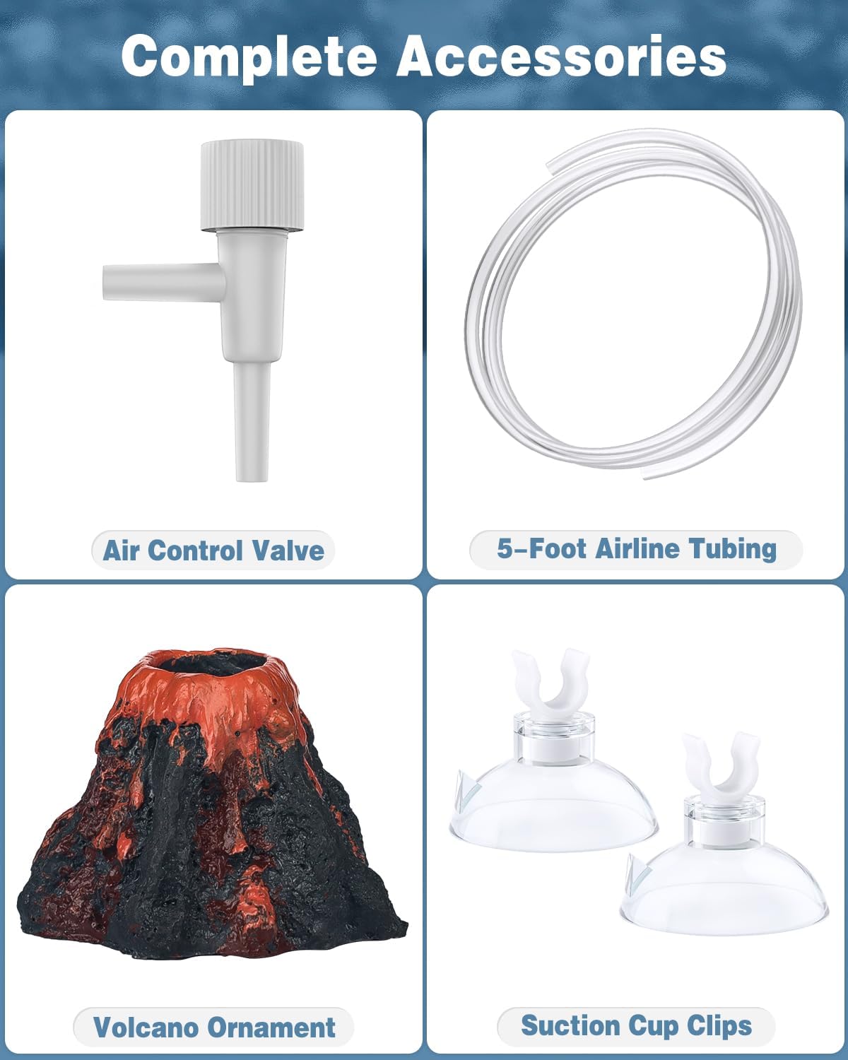 Vivid Landscape: Come with a built-in air stone at bottom. Strings of bubbles from the air stone spout from the bubbler. It contrasts finely with the overflowing lava and creates a rare scene of volcanic eruption.