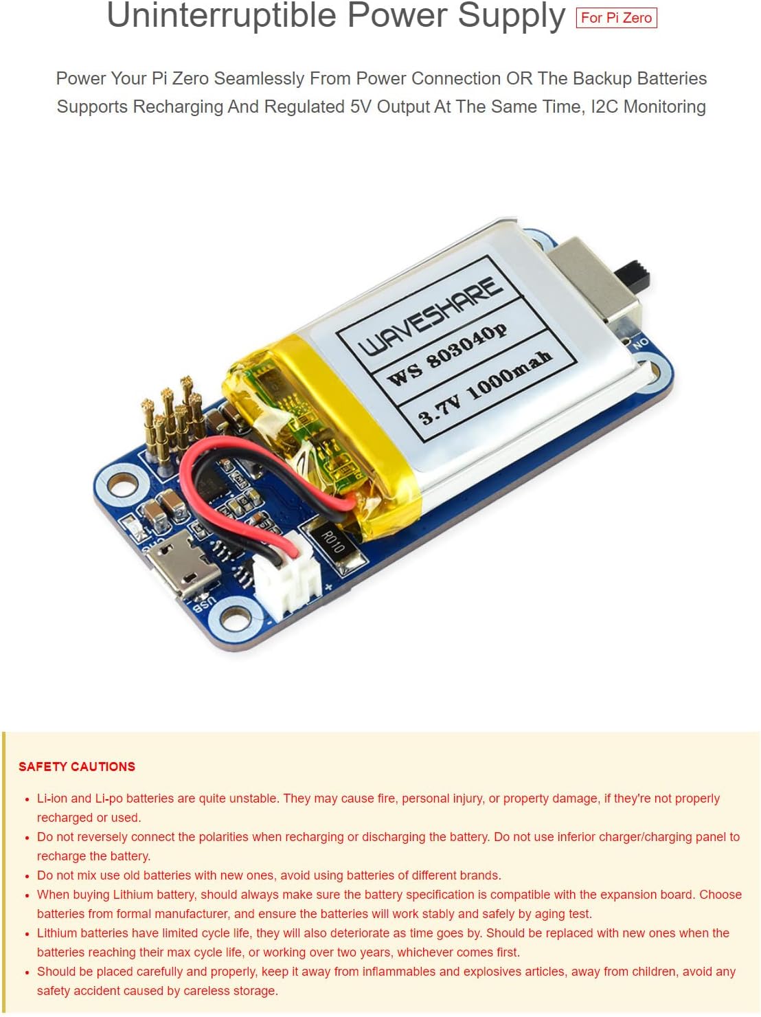 8 reviews for UPS HAT (C) for Raspberry Pi Zero Boards, Provides 5V Uninterruptible Stable Power with Pogo Pin Connector