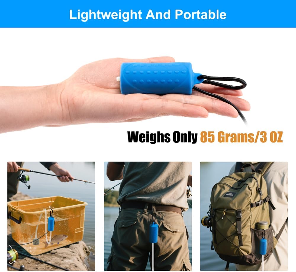【Lightweight And Portable】: Compact and weighing only 85 grams, this mini fish tank air pump from DaToo is easy to take with you wherever you go. It is also thoughtfully equipped with an exclusive strong buckle, can be easily hung on the waist, backpack or other outdoor use of the container, greatly reducing the probability of loss, for your outdoor travel use escort.