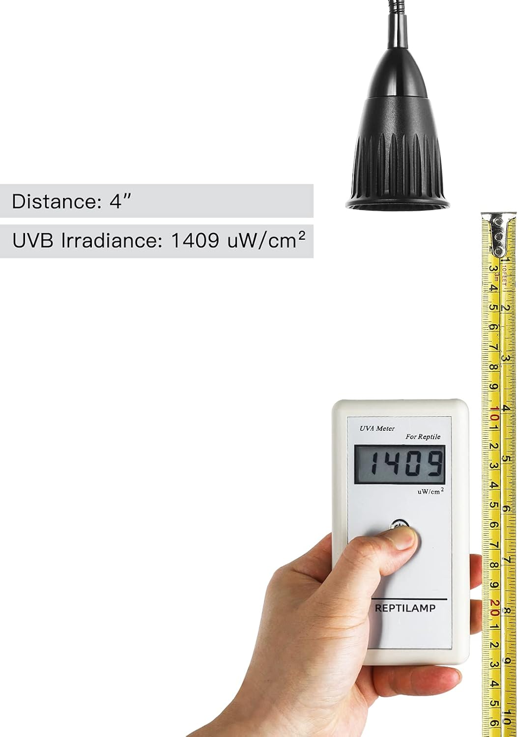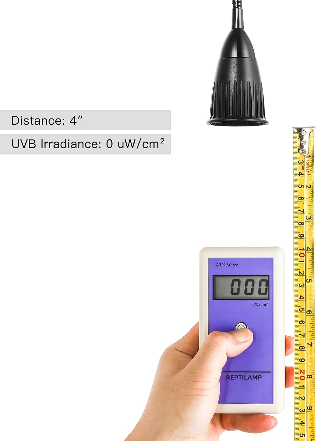 UVB Irradiance: 4″ away, more than 500 uW/c㎡