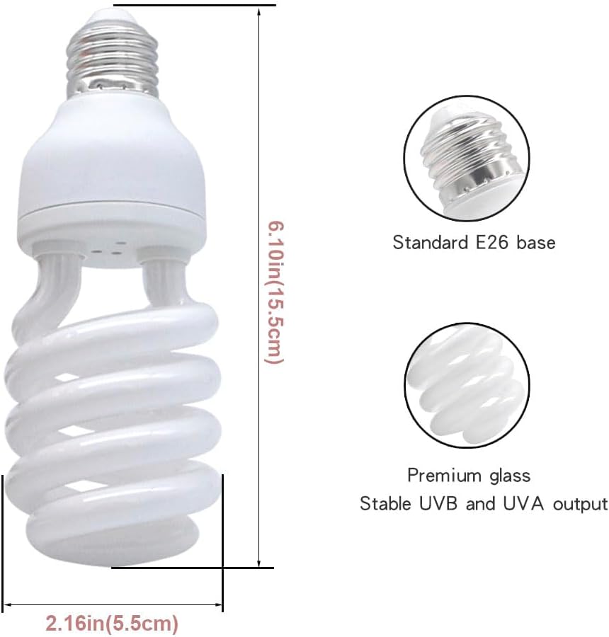Capable of Stable Use for More Than 8000 Hours: High-quality quartz material is used to manufacture the lamp tube. Efficient electronic components with great heat dissipation and sturdy casing ensure the stability and durability of this reptile UVB bulb. Efficient and stable UVB-UVA light allow reptiles to fully enjoy the sunshine bath.