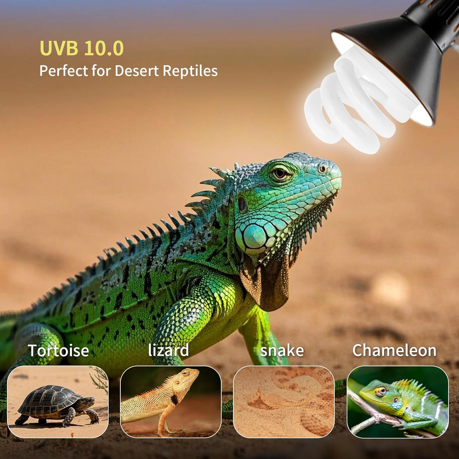 Suitable for Tropical Desert Reptiles: The UVB 10.0 reptile light bulb is suitable for tropical desert reptiles, including bearded dragon, tortoises, geckos, snakes, iguanas, lizards, chameleons & more. Taking a few hours of UVB light every day can greatly enhance the vitality of reptile pet crawling and prevent and treat diseases