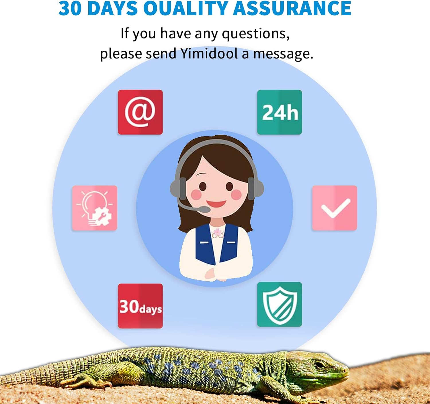 30 Days of Quality Assurance Service: 24-7 Support, We stand behind our UVB reptile lamp and offer excellent customer support. If you have any questions or concerns about our lamp, our friendly customer service team is always here to help