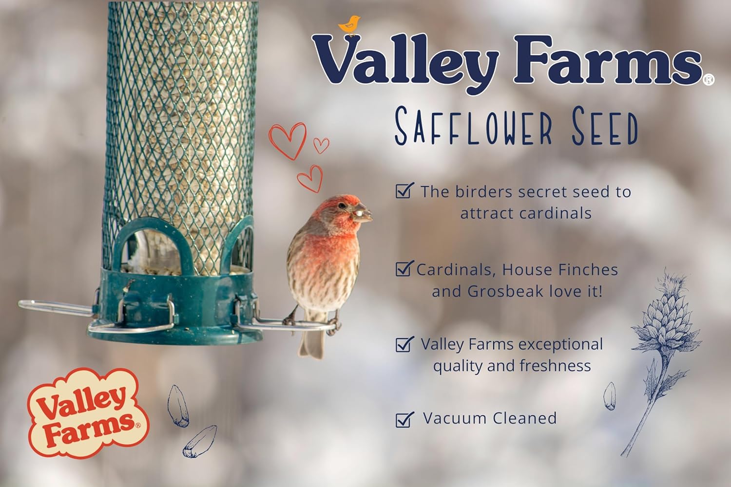 Valley Farms Safflower Seed Wild Bird Food (4 LB) Birdseed for Outside Feeders to Attract Cardinals, Titmice & Grosbeaks
