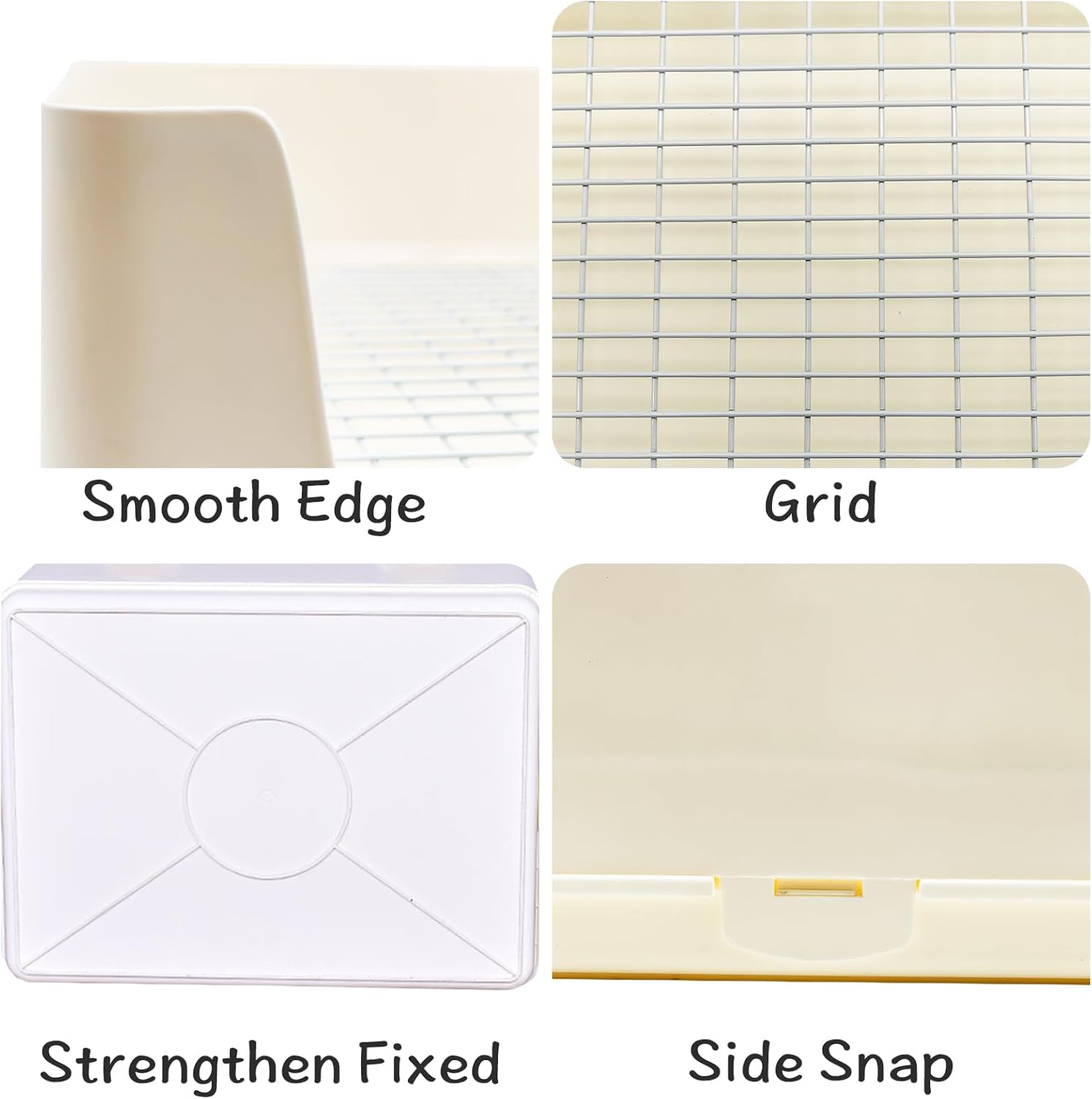 VCEPJH Extra Large Rabbit Litter Box for Cage, Plastic Litter Pan Corner Pet Toilet Small Animal Potty Tray with Metal Grate for Adult Guinea Pigs Chinchillas Ferrets (White)