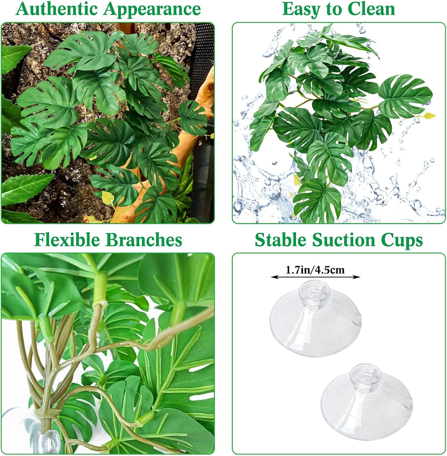 3 reviews for VCEPJH Reptile Plants with Suction Cup Amphibian Habitat Decor 2 Pcs Artificial Leaves for Terrarium Decor Crested Gecko Tank Accessories for Bearded Dragon, Lizard, Snake (Monstera)