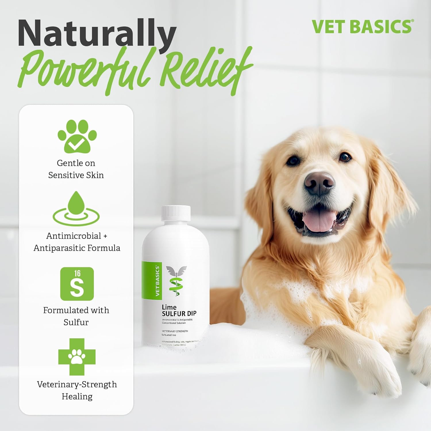 Vet Basics Lime Sulfur Dip – Skin Itch Relief Concentrated Antimicrobial & Antiparasitic Solution for Dogs, Cats, Puppies, Kittens & Horses, Helps Manage Ringworm, Mange, Skin Irritation, 16oz