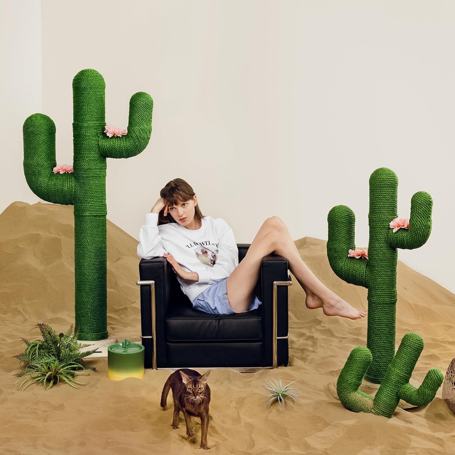 【Durable Jute Rope】The all-natural jute rope used in the construction of the Cactus Cat Tree is specifically chosen for its durability and texture, making it an ideal material for satisfying your cat’s natural scratching instincts. Wrap the entire body tightly with jute rope from top to bottom, providing a more sturdy and long-lasting scratching surface.
