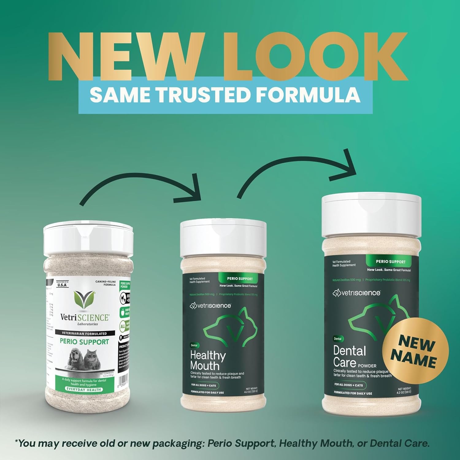 VetriScience Dental Care Powder, Perio Support Clinically Tested Dental Supplement for Small, Medium and Large Breed Dogs, Freshen Breath, Control Plaque and Tartar, Oral Health, 4.2 oz