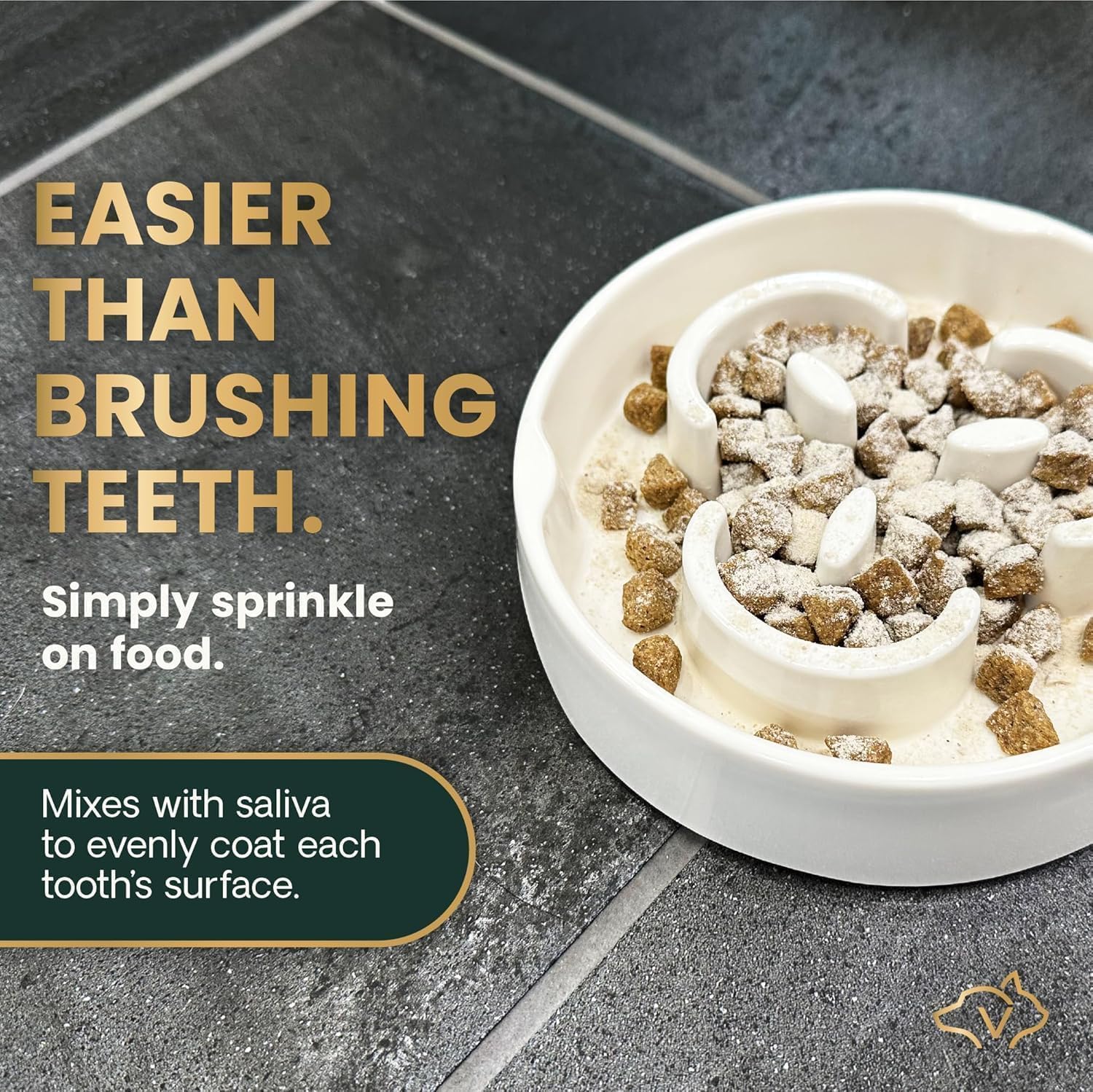 Meal Topper for Dental Health: This aromatic, flavorless dental powder for dogs and cats is easy to use as a meal topper with dry food, canned food, homemade, or raw food. The smooth, untextured powder is easy to disguise for particularly picky pets