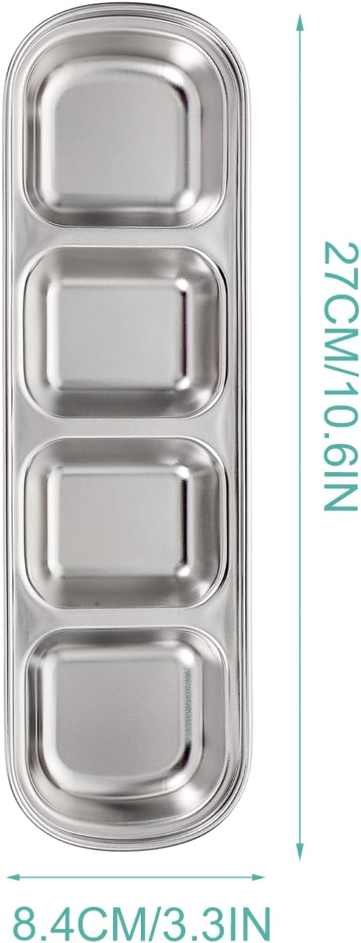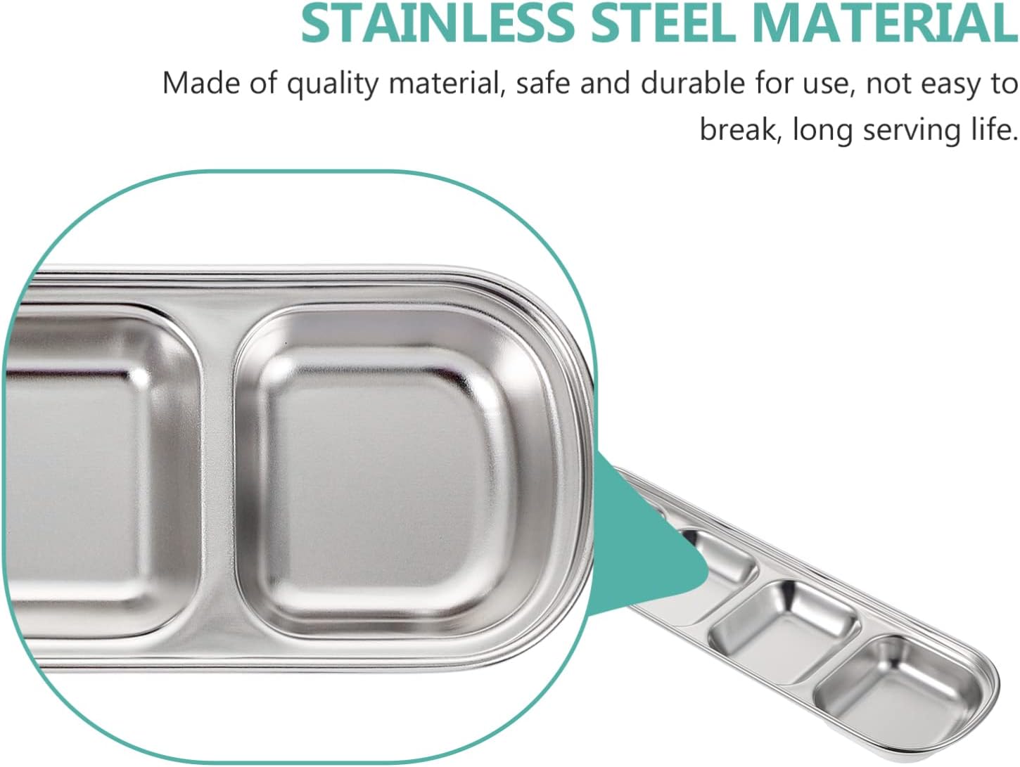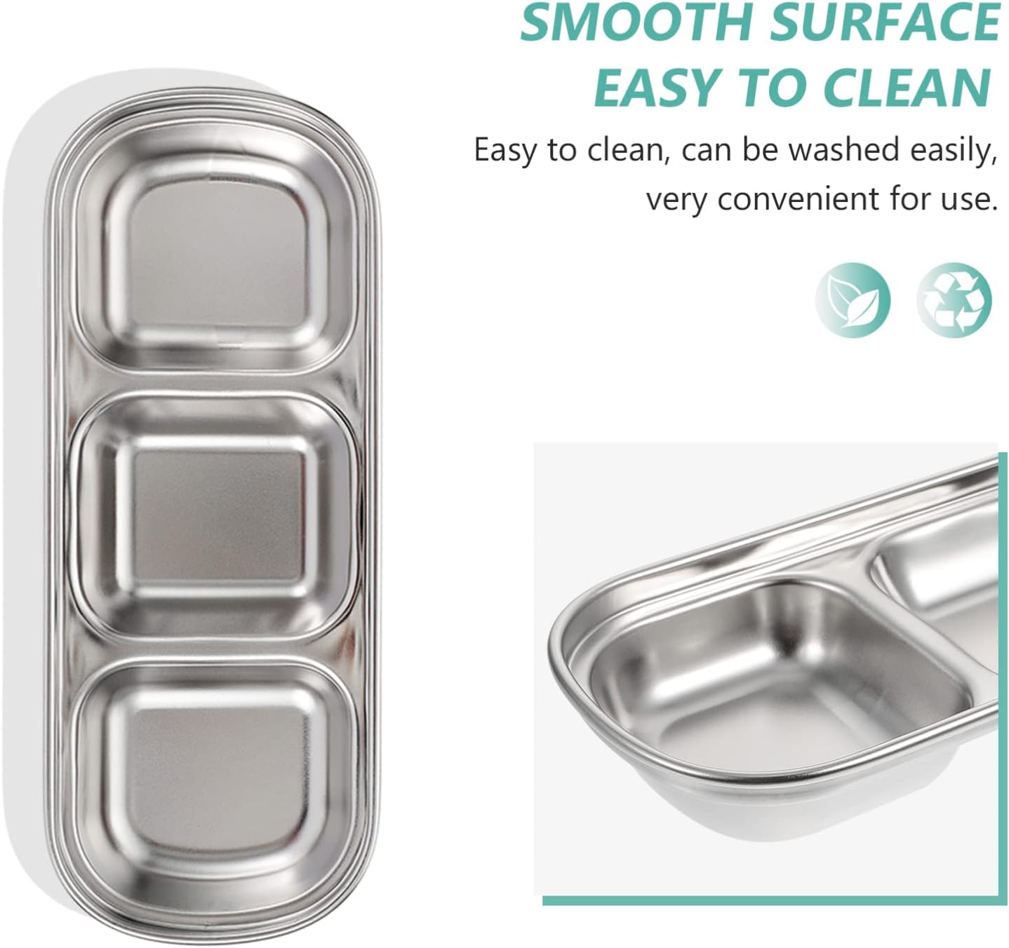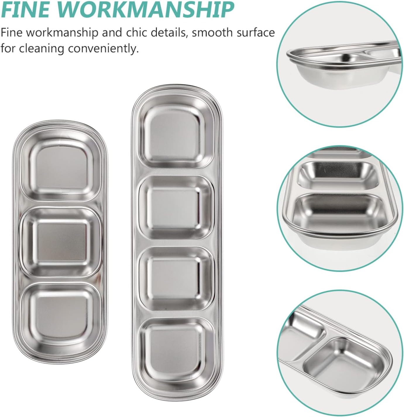 VILLCASE 2pcs Stainless Steel Feeding Tray Pet Divided Dishes, Compartment Pet Tray Food Bowls, Three and Four Feeding Plate Water Feeder, Multi-Grid for Small Kitten Cat Dogs