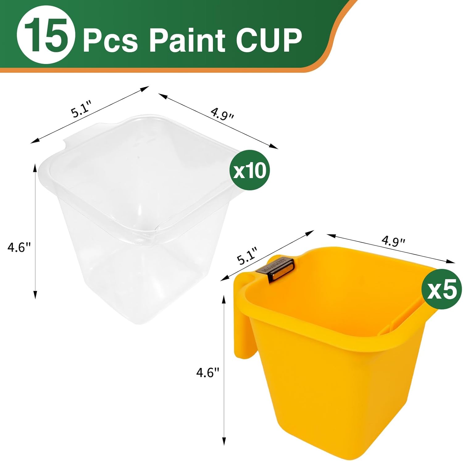 Voomey 15Pc Paint Bucket Holds 16 oz. of Paint or Stain, Paint Cup, Paint Pail Liner, Trim Painting Tool, for Finishing Work and Repairs