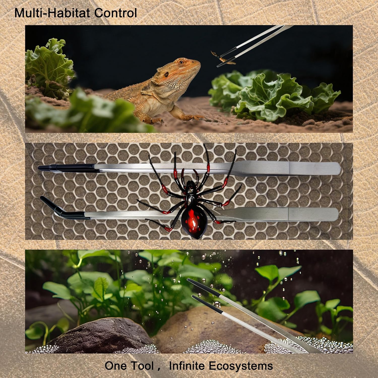 2-Pack Complete Kit: Dual-tool solution (straight + curved) handles all tasks: from bearded dragon feeding to aquarium maintenance. Versatile for leopard gecko tank accessories, crested gecko tank accessories, and terrarium upkeep.