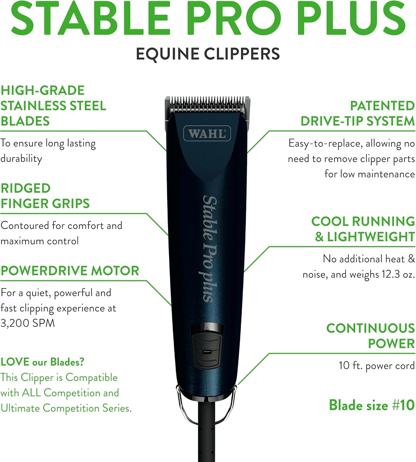 Wahl Professional Animal Stable Pro Plus Horse Clipper Kit (#9774) – Premium Horse Clippers – Horse Grooming Supplies – Lightweight, Quiet, Cool Clippers – 3,200 SPM – 1 Speed