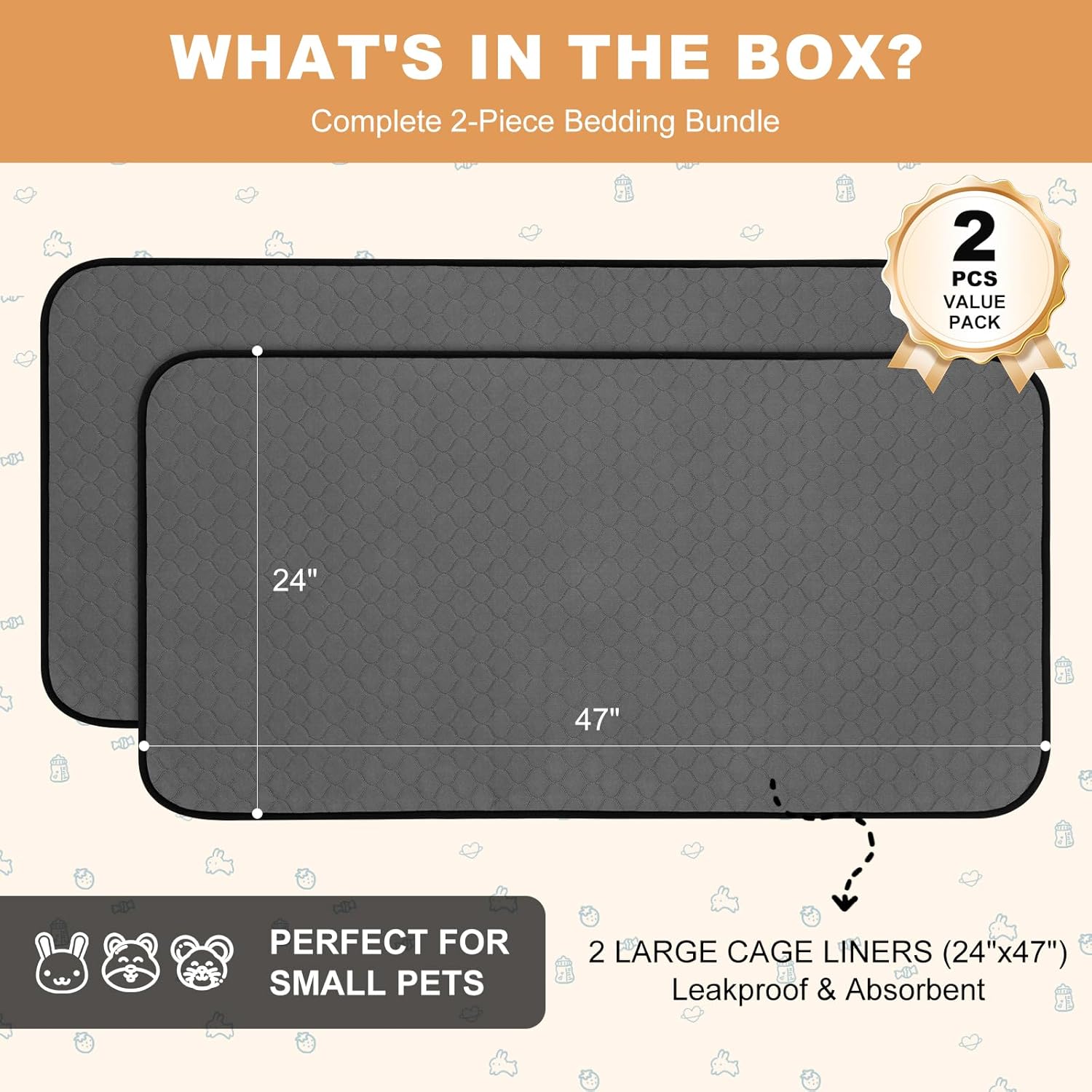 Washable Guinea Pig Liners for Cage, 2 Pack 24″ X 47″ Super Absorbent Reusable Guinea Pig Bedding Pee Pads Tarp Bottom for C&C Cage with Rabbits, Bunny, Chinchesillas, and Other Small Animals