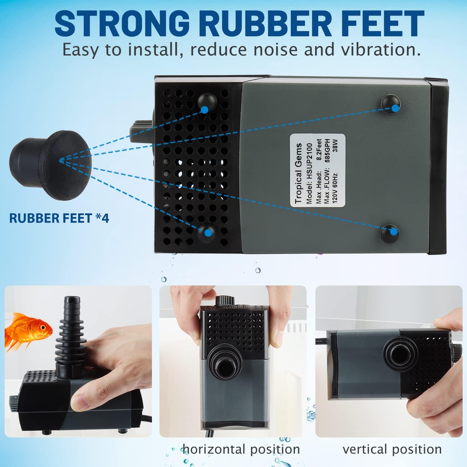 WaterRebirth HSUP2100F Versatile Submersible Pump – Fountain Jets for Ponds, Fish Tanks, Water Gardens – Aquarium & Pond Pump (2100L/H)