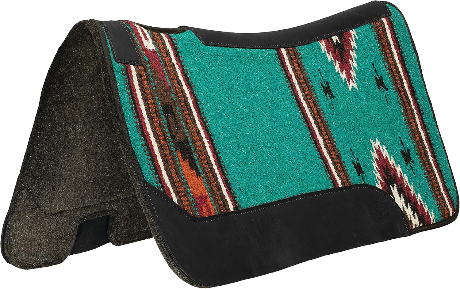 Weaver Equine 31″ x 32″ Contoured Single Weave Wool Blend Felt Horse Saddle Pad, Shock Absorbing Western Saddle Pad for Protection, Turquoise Pattern
