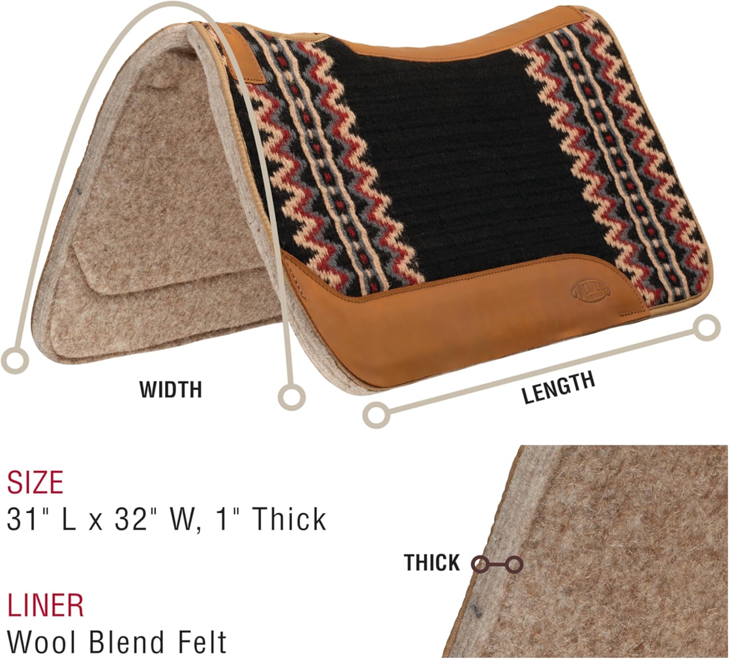 Quality New Zealand wool top is highlighted with an attractive Mesa pattern for a pad that looks as great as it performs. Moisture-wicking natural wool blend felt helps keep your horse cools and comfortable.