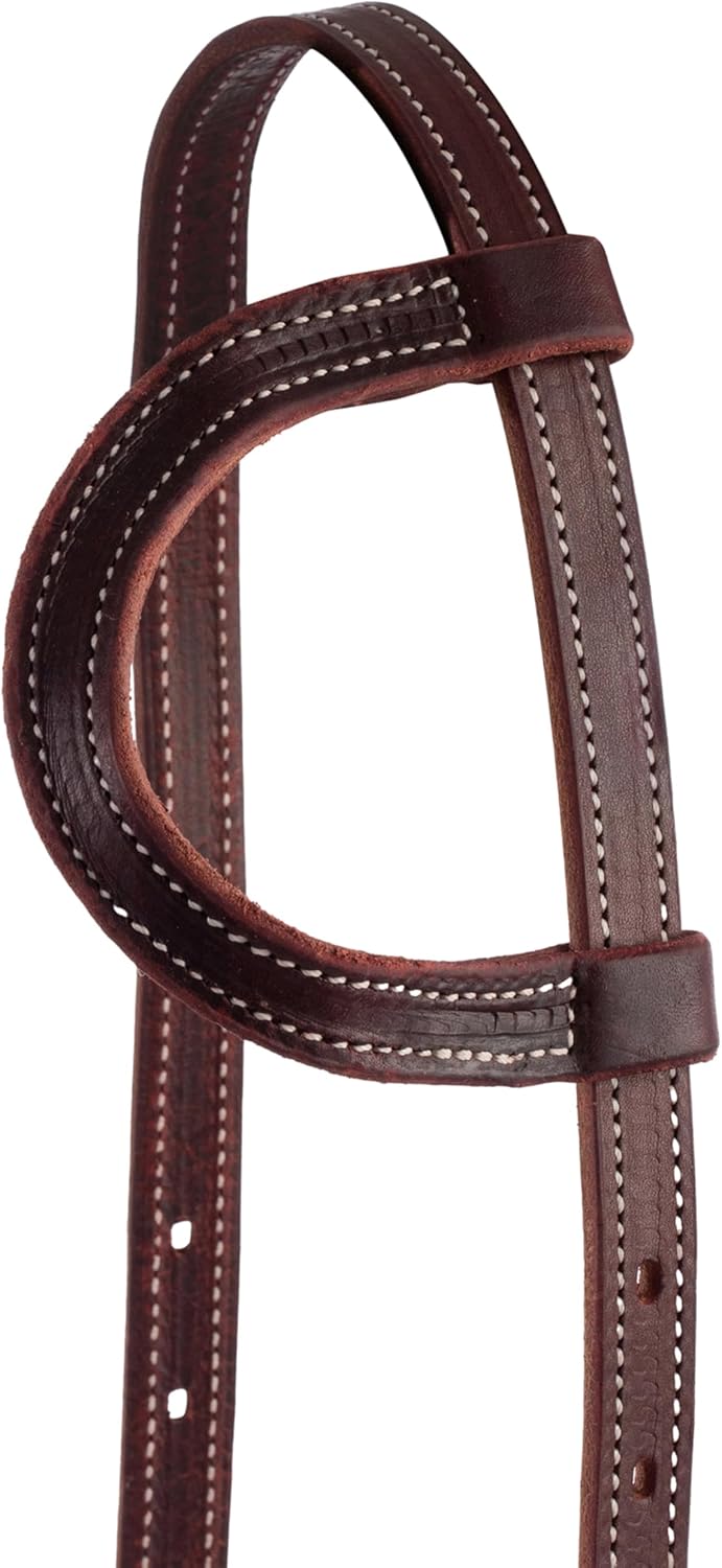 Saddle up in style with this 5/8″ pony headstall made from doubled and stitched sunset harness leather
