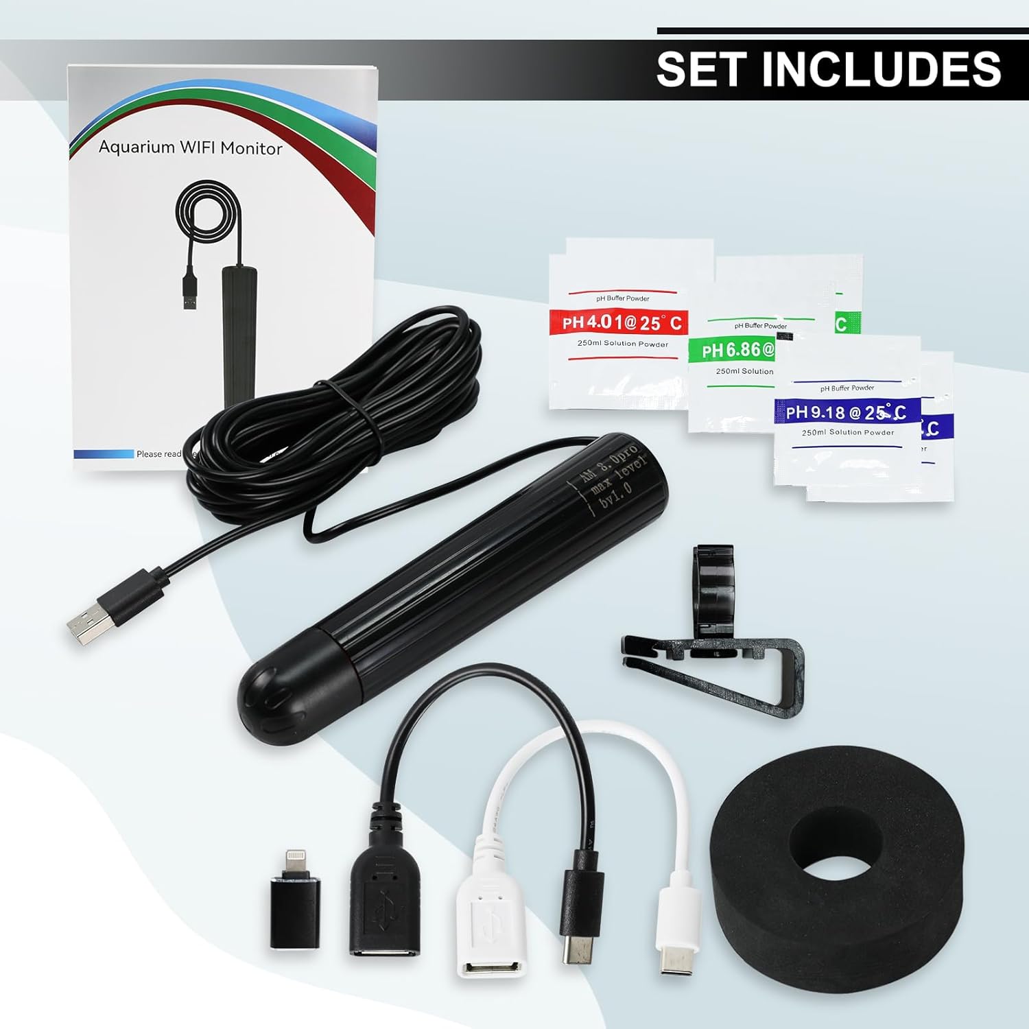 ✅【Complete Kit Set】All-in-one package waterproof probe, protective cap, USB-Type-C cable, power plug, floating foam, calibration powders, a lightning adapter, and a clear manual
