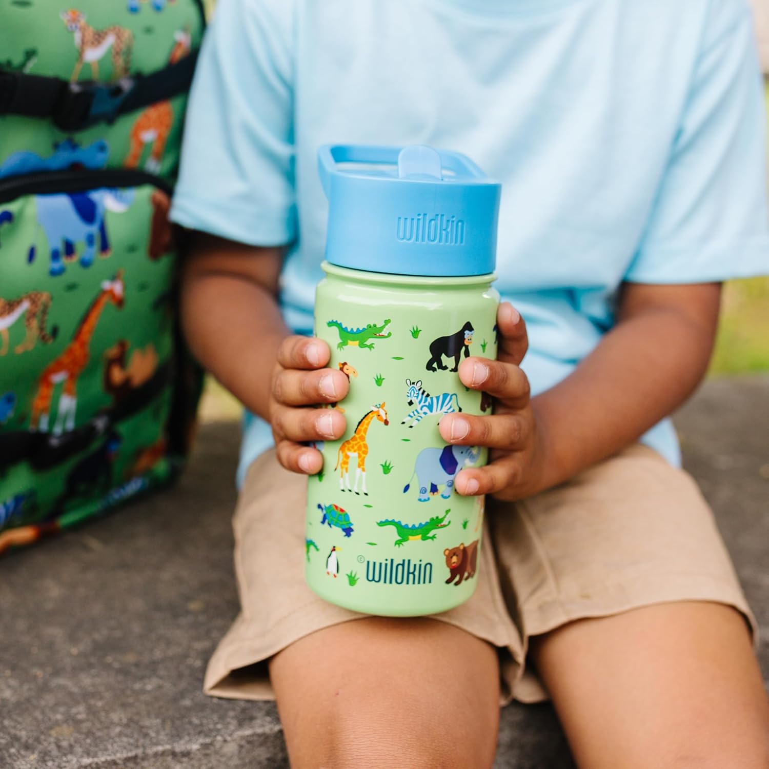 Wildkin Kids 14oz Stainless Steel Water Bottle – BPA-Free, Leakproof, Insulated, Easy-Clean – Wild Animals