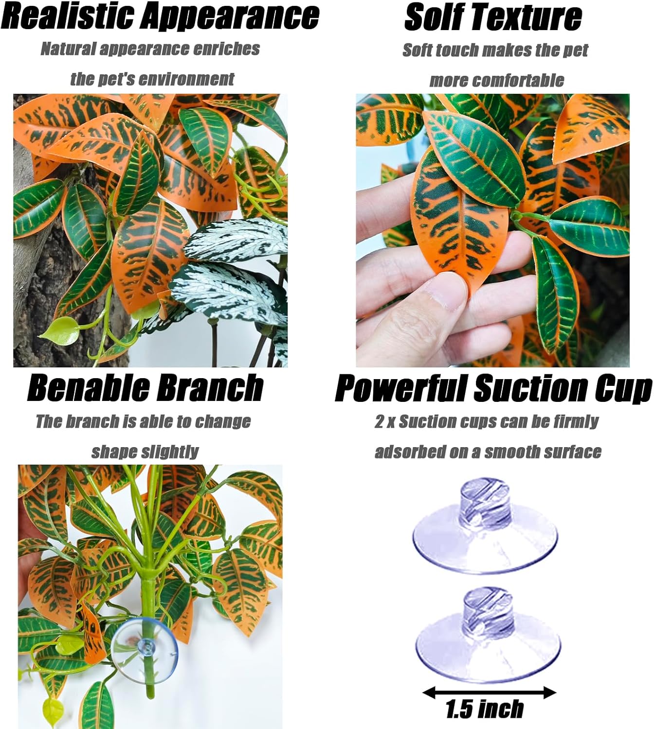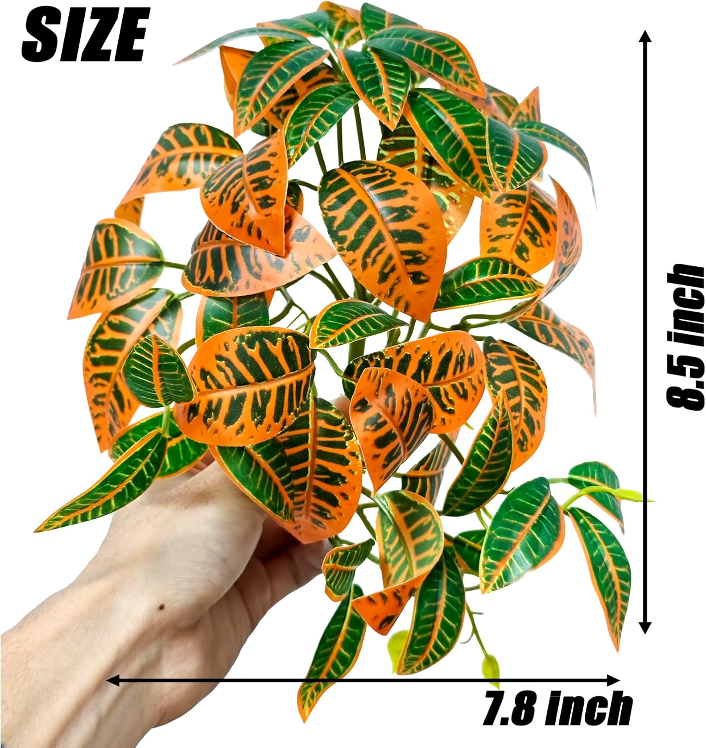 Woyrise Reptile Plants, Terrarium Hanging Plant Vines, Artificial Leaves with Suction Cup, Bearded Dragon Tank Accessories for Gecko Lizard Snake Frog Tortoise Decorations – Codiaeum Variegatum