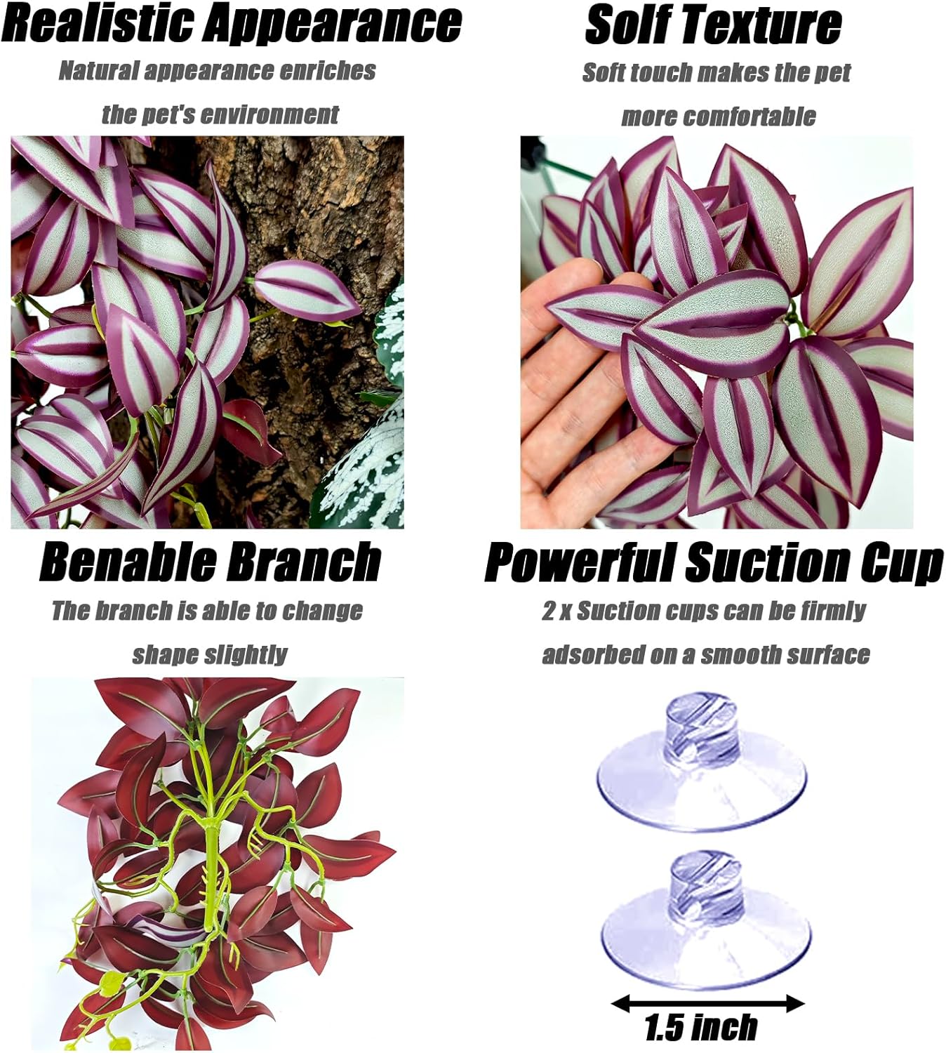 Woyrise Reptile Plants, Terrarium Hanging Plant Vines, Artificial Leaves with Suction Cup, Bearded Dragon Tank Accessories for Gecko Lizard Snake Frog Tortoise Decorations – Purple Zebrina