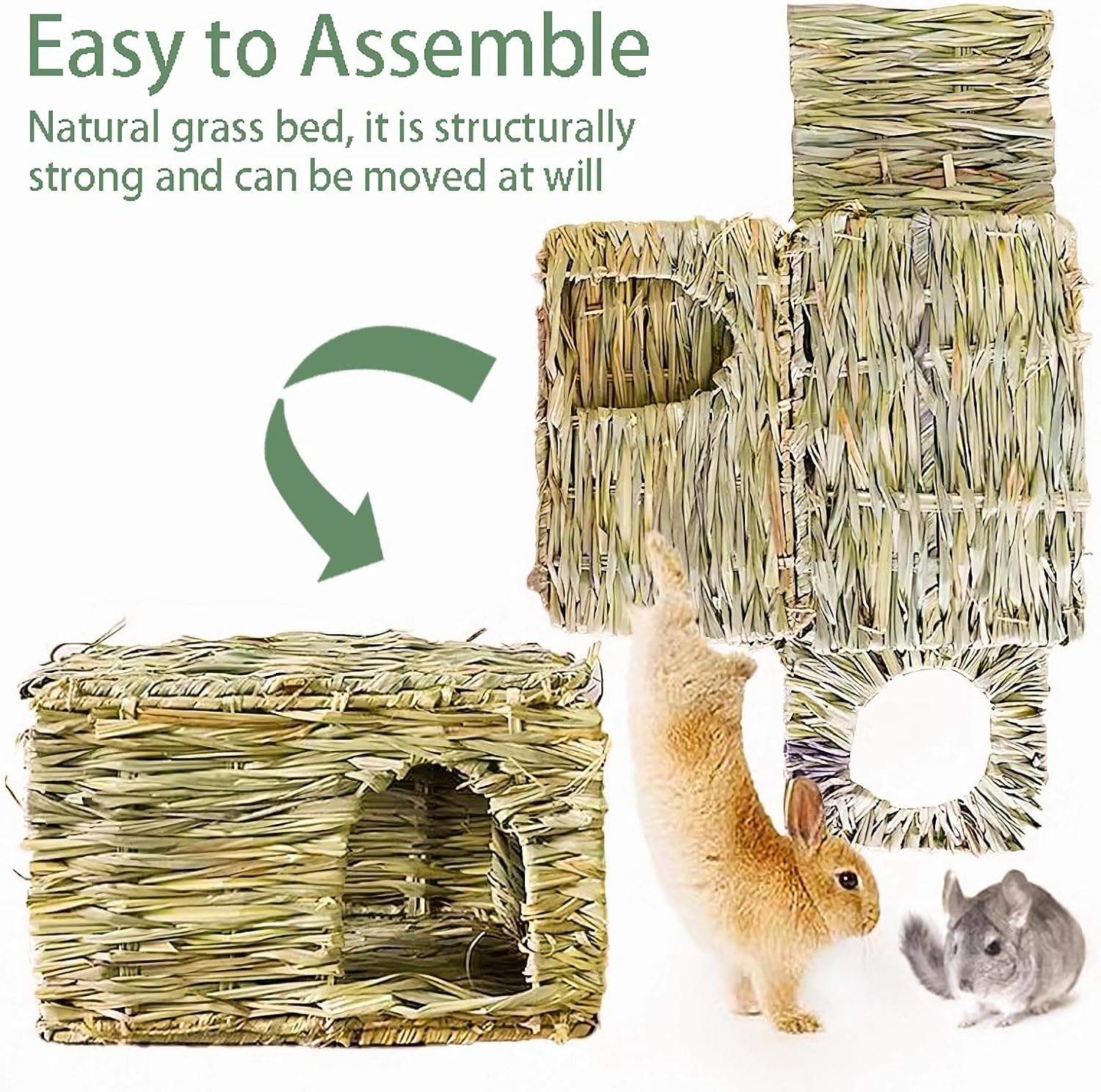 Since bunnies require something to chew on, provide them a bed that keeps their teeth trimmed and healthy is necessary. WUWEOT 2 pack large grass houses are 100% hand crafted and the scent of the natural blades of grass entices animals to nibble, gnaw and forage.
