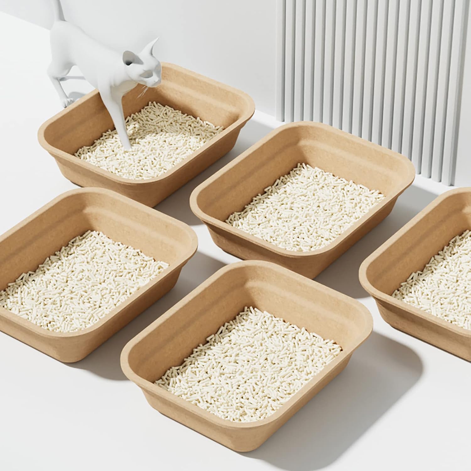Our paper cat litter box is disposable, you can throw the old one directly after use, and then replace a new one, which will not only provide a clean environment for your cat, but also save some cleaning time. It is recommended to replace every 2 weeks according to the actual situation. They can be applied as cat litter boxes or liners alone.