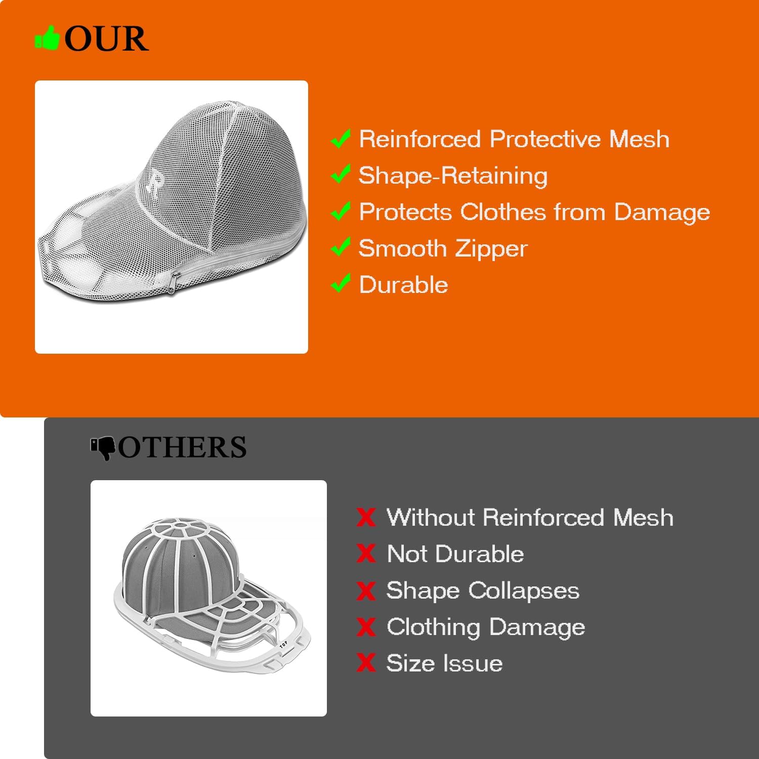 Upgraded Hat Washing Cage with Mesh Cover: The hat washer’s upgraded mesh cover and zip closure design make it super easy to place and retrieve your hats; The mesh hat cleaner for baseball caps prevents wear and tear, ensuring your caps free from lint