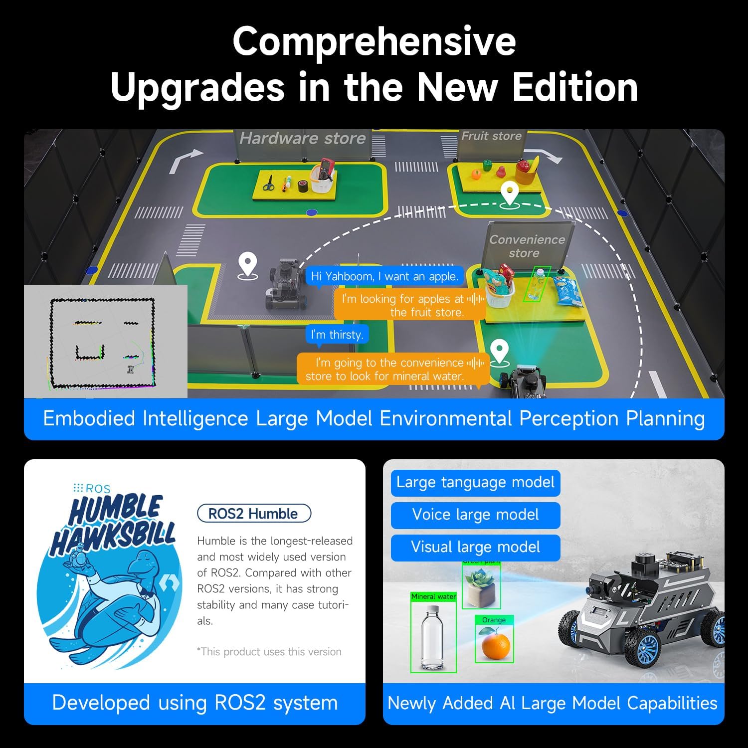【AI Large Model Interaction & Embodied Intelligence】Rosmaster A1 supports dual-model dynamic reasoning, enhanced RAG search, and free conversation interruption. It recognizes the described scene and boasts superior environmental perception, reasoning, and intelligent execution capabilities, enabling natural, smooth, and context-aware human-computer interaction.