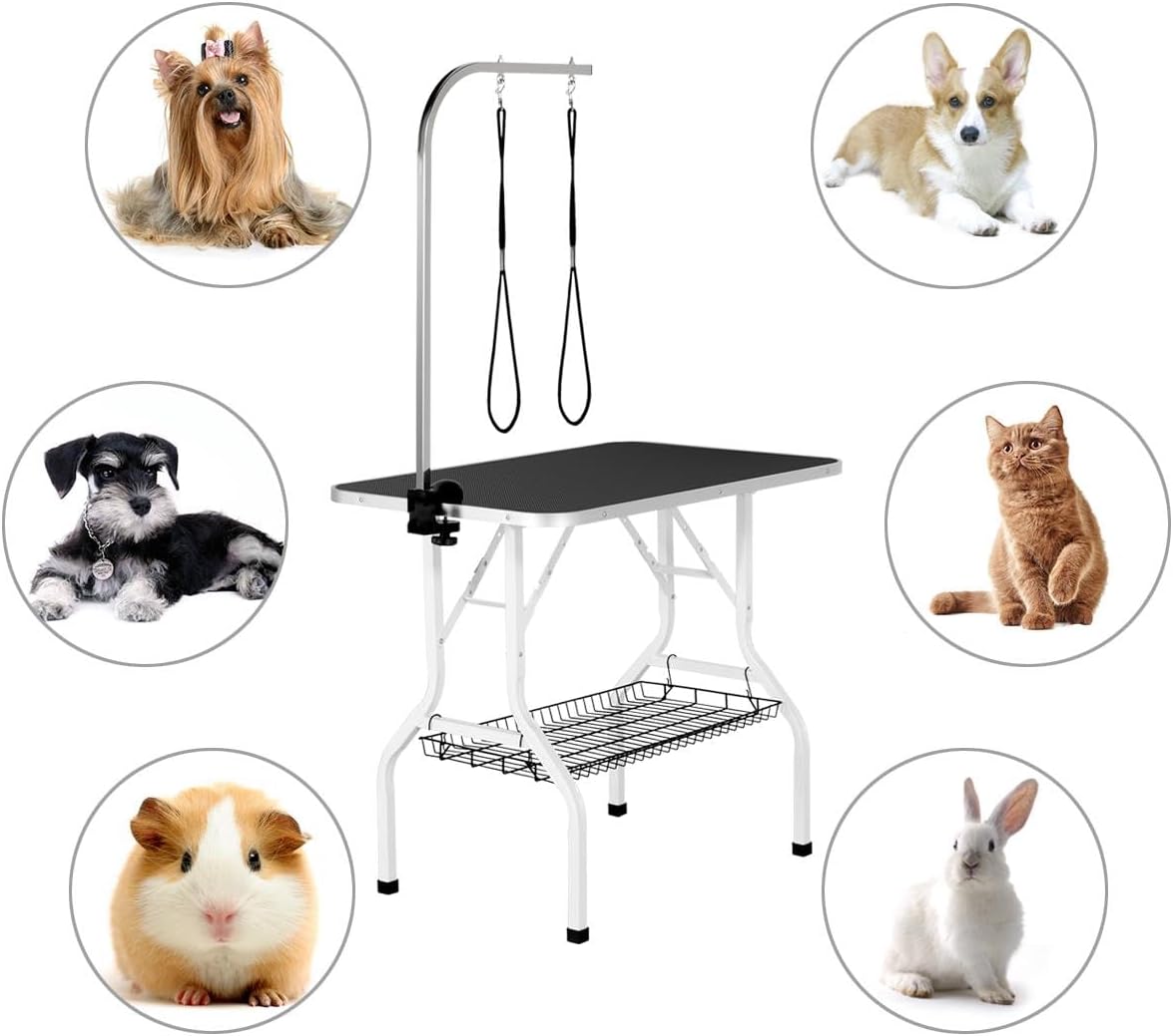 Yaheetech Professional 36″ Foldable Pet Grooming Table w/ Adjustable Arm & Noose & Mesh Tray