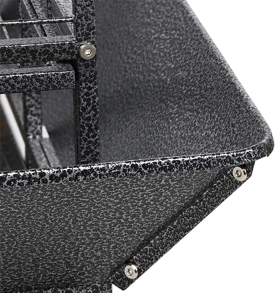The four-sided seed guard catches the spilled feeds and droppings while the slide-out tray gathers them for easy cleaning. A bottom grate prevents birds from walking directly on their excrement, ensuring your pets’ health and the tidiness of the cage.