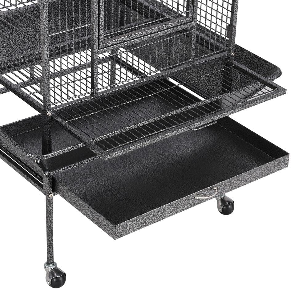 Spacious & Comfy: With a size of 24″ L x 22″ W x 35″ H, this roomy bird home with a bar spacing of 5/8 inch can easily accommodate 2-3 small to medium-sized birds like canaries, cockatiels, monk parakeets and golden parakeets
