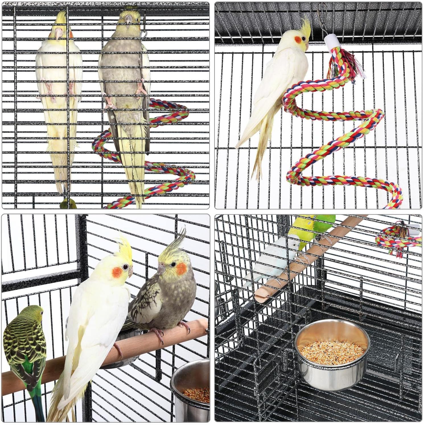 TOY INCLUDED: This bird cage comes with a parrot bungee rope that is made of metal wire and polyester, strong enough to withstand the bites from your pets.