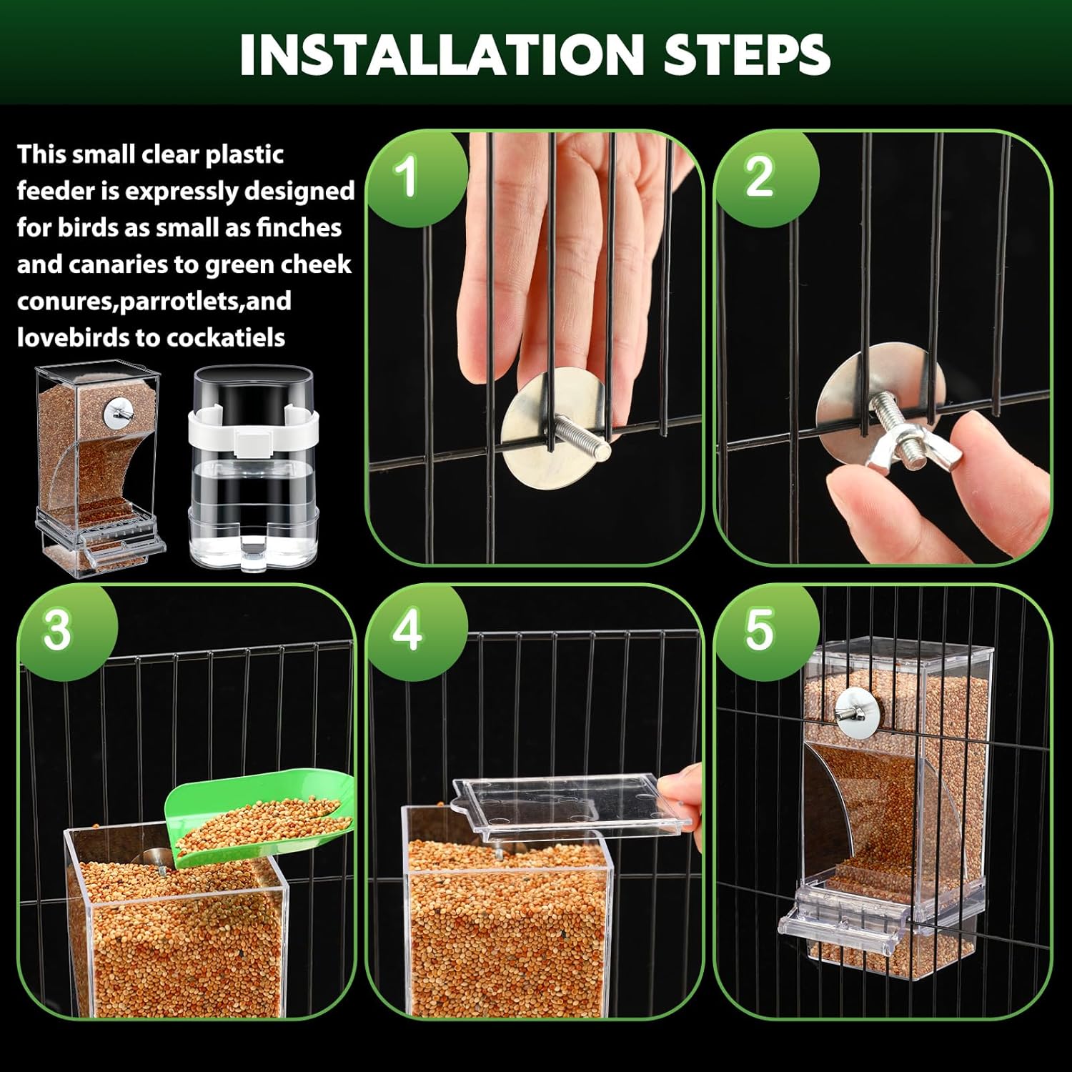 Reduce Mess: the bottom of the bird food container can store the uneaten seeds, and the closed sides can keep the food from spilling out, will keep your cage clean, saving much time for doing some tired cleaning works