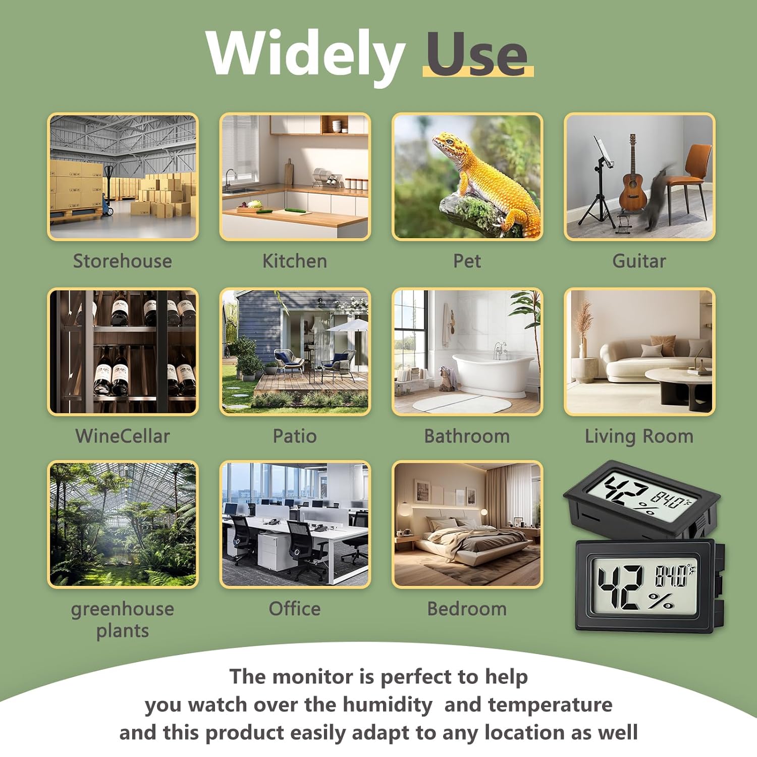 SCOPE OF USE: Ideal for monitoring temperature and humidity in homes, warehouses, greenhouses, and terrariums for reptiles, hermit crabs, plants, wine cellars, and more