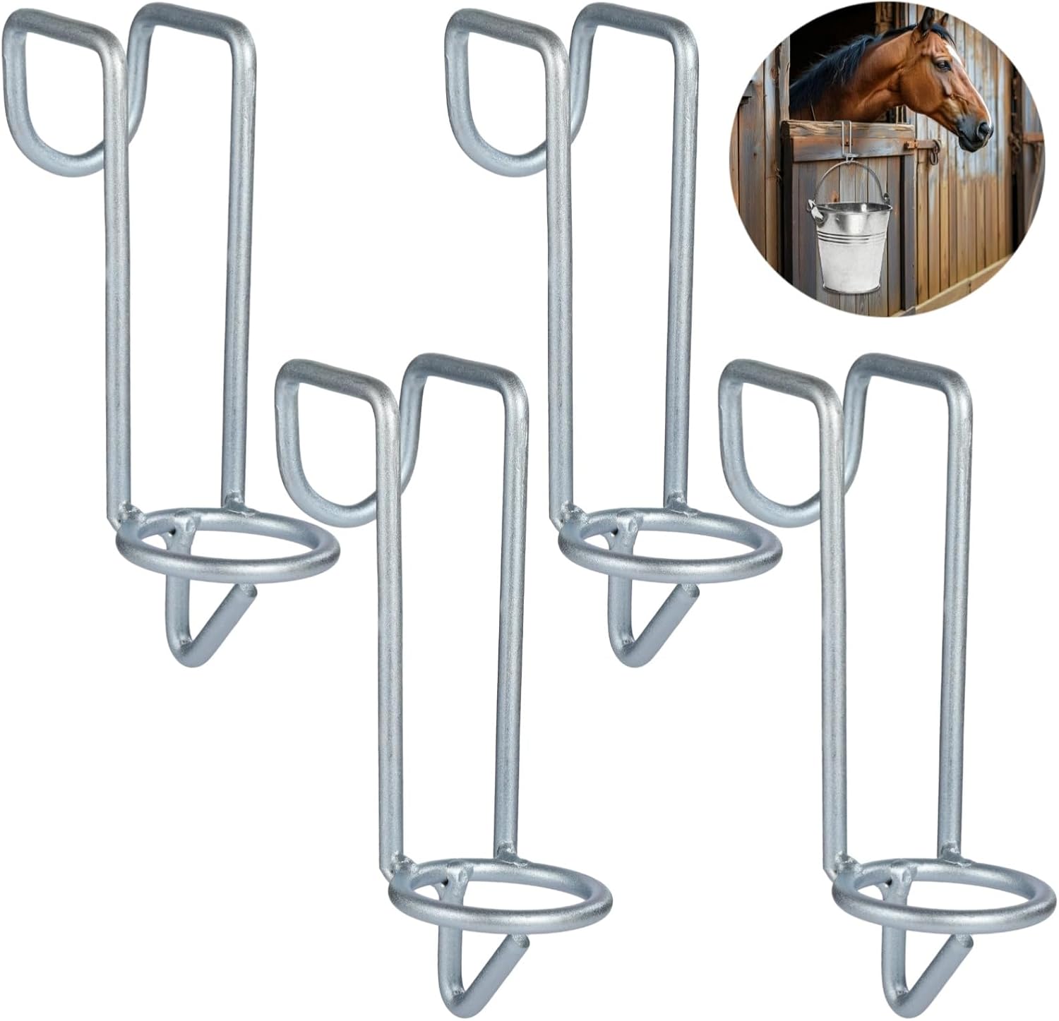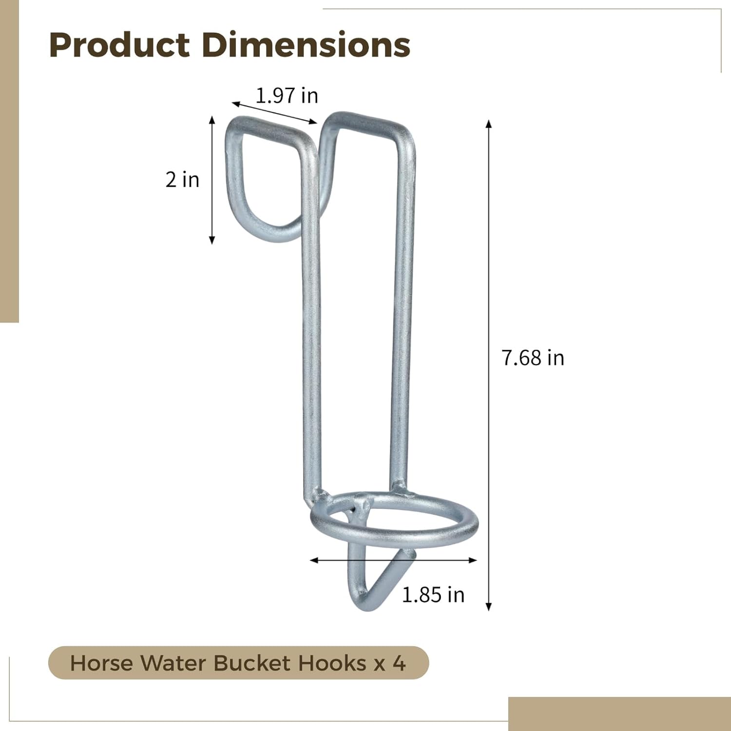 yeesport 4 Pcs Horse Water Bucket Hooks, Quality Metal, Rust-Resistant, Double Hook Design, Easy Installation for Stables Barns and Livestock Use