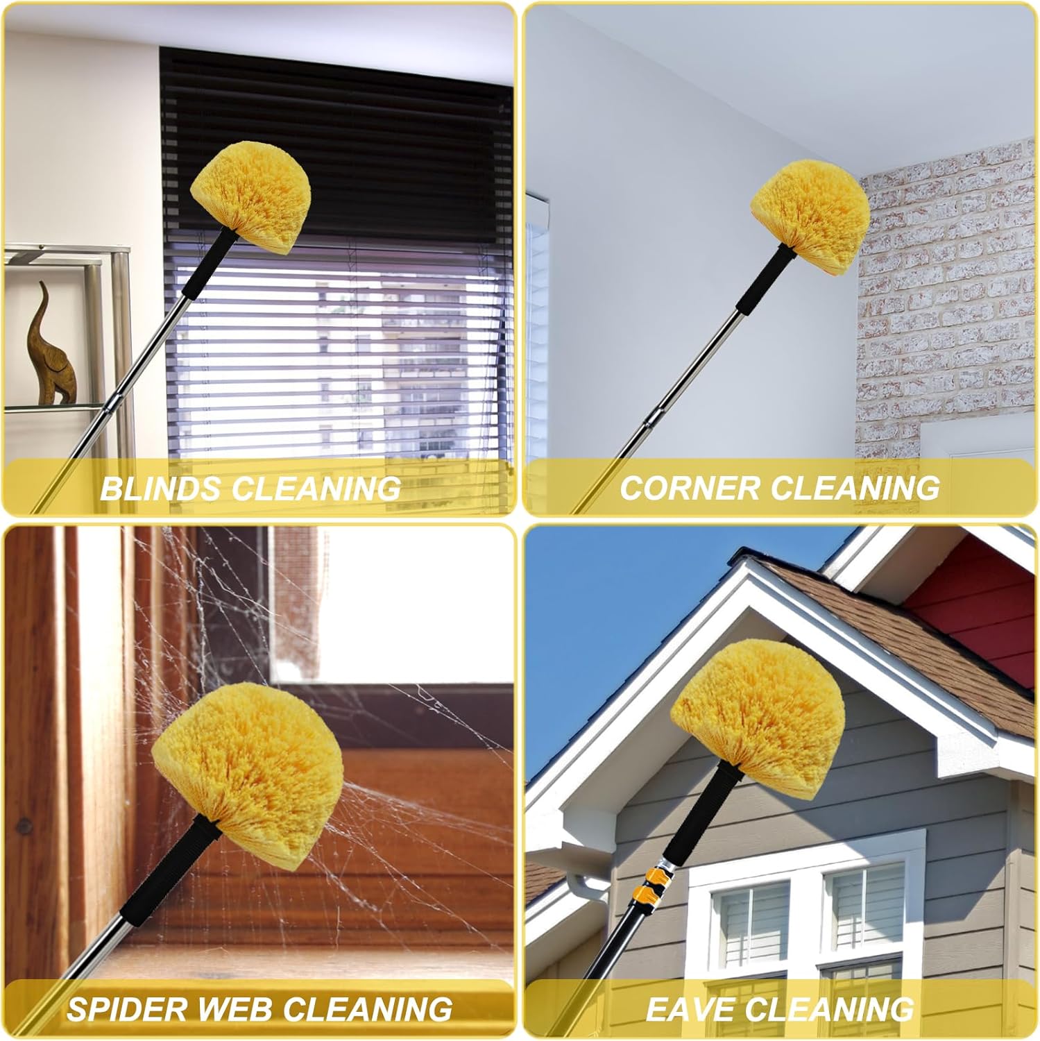 Wide Application Range: The spider web brush excels in removing cobwebs and dust from eaves, porches, walls, blinds, windows, ceiling fans, garages, pool cages, and balconies.