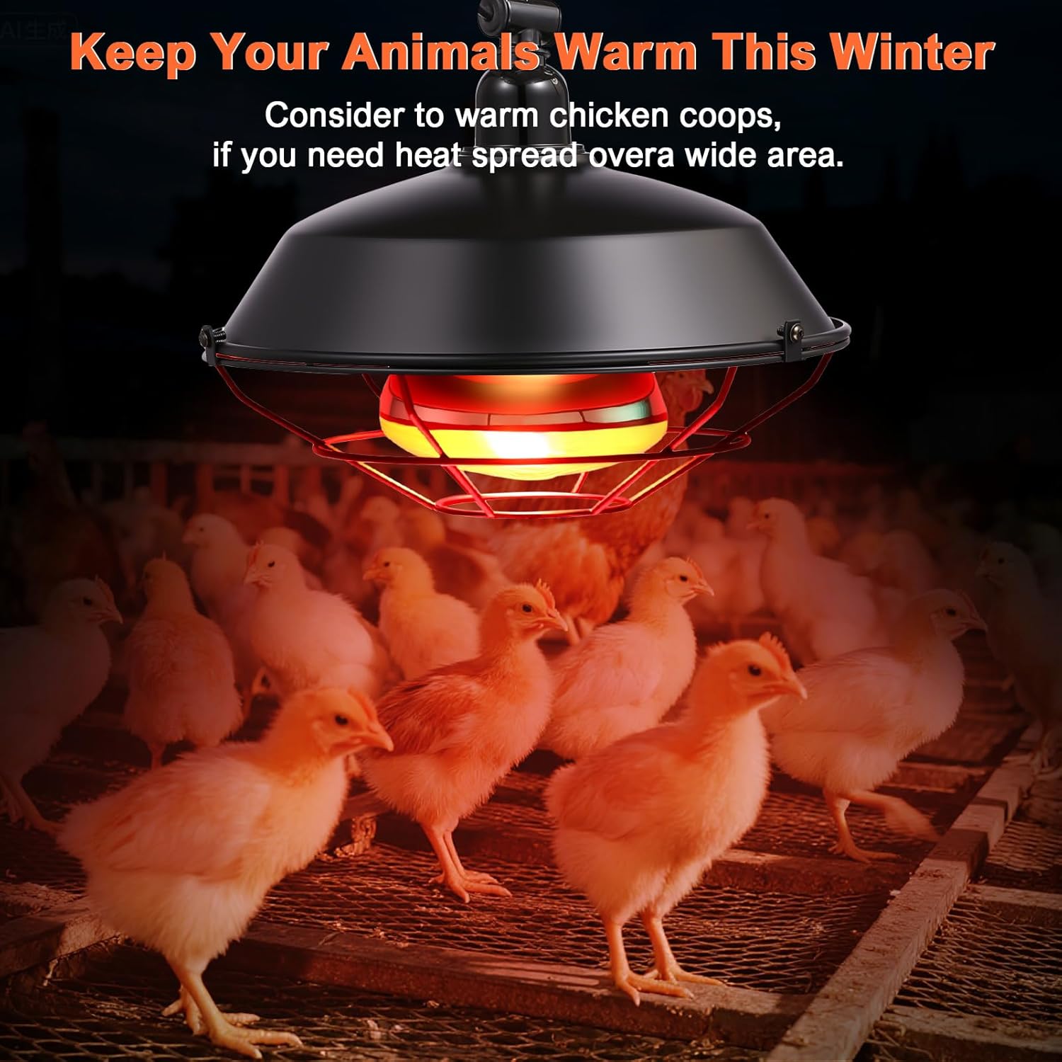 -This chicken coop heater uses a heating lamp with infrared light source. It integrates the functions of heating and supplementary lighting, providing the necessary heat and infrared rays for the growth of small animals; it promotes calcium absorption, strengthens bones, and promotes the healthy growth of chicks.