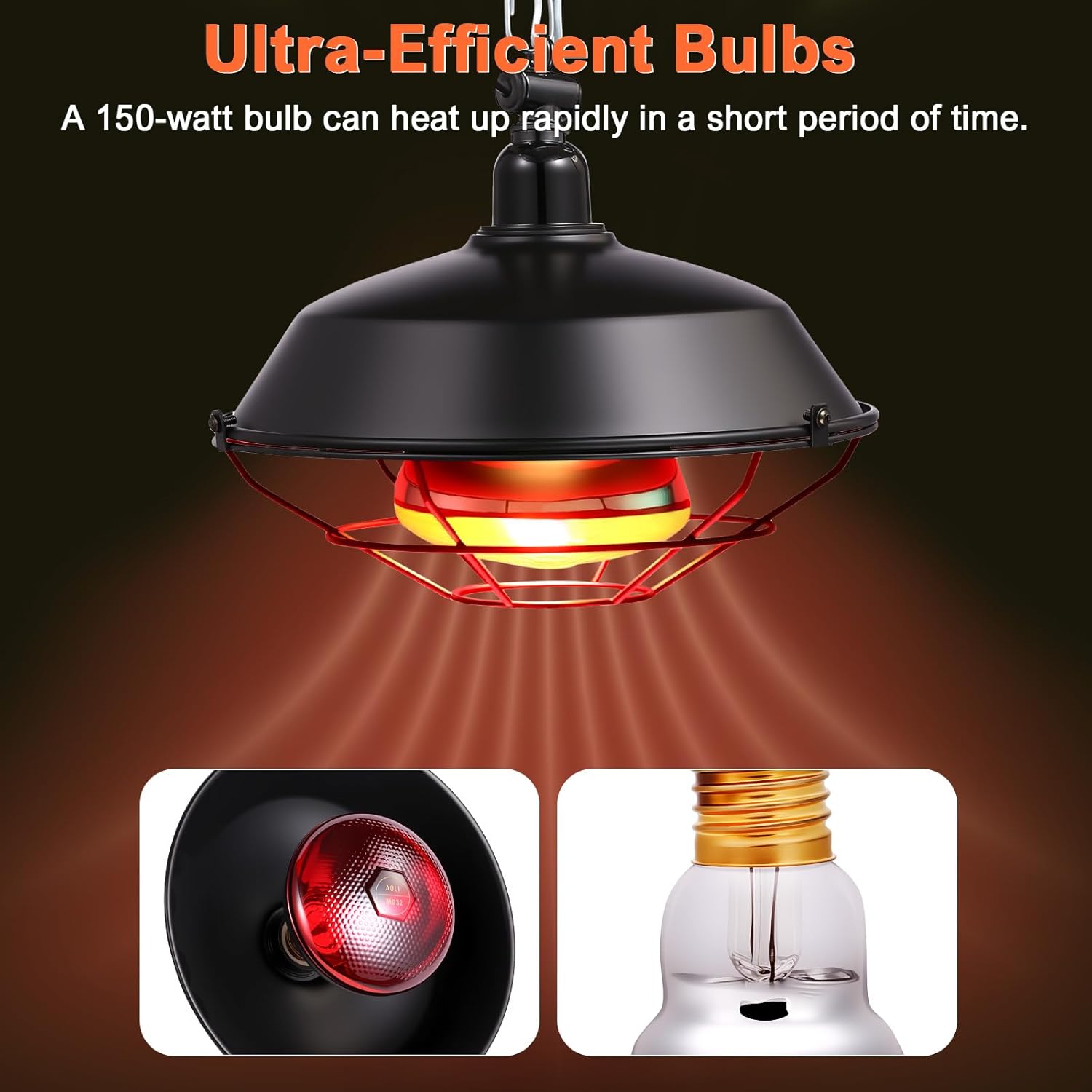 🐣Circular Lampshade: Unlike the rectangular lampshades available on the market, this chicken coop heater uses a circular lampshade, which can maximize heat collection and reduce heat loss. Save your energy and increase efficiency.