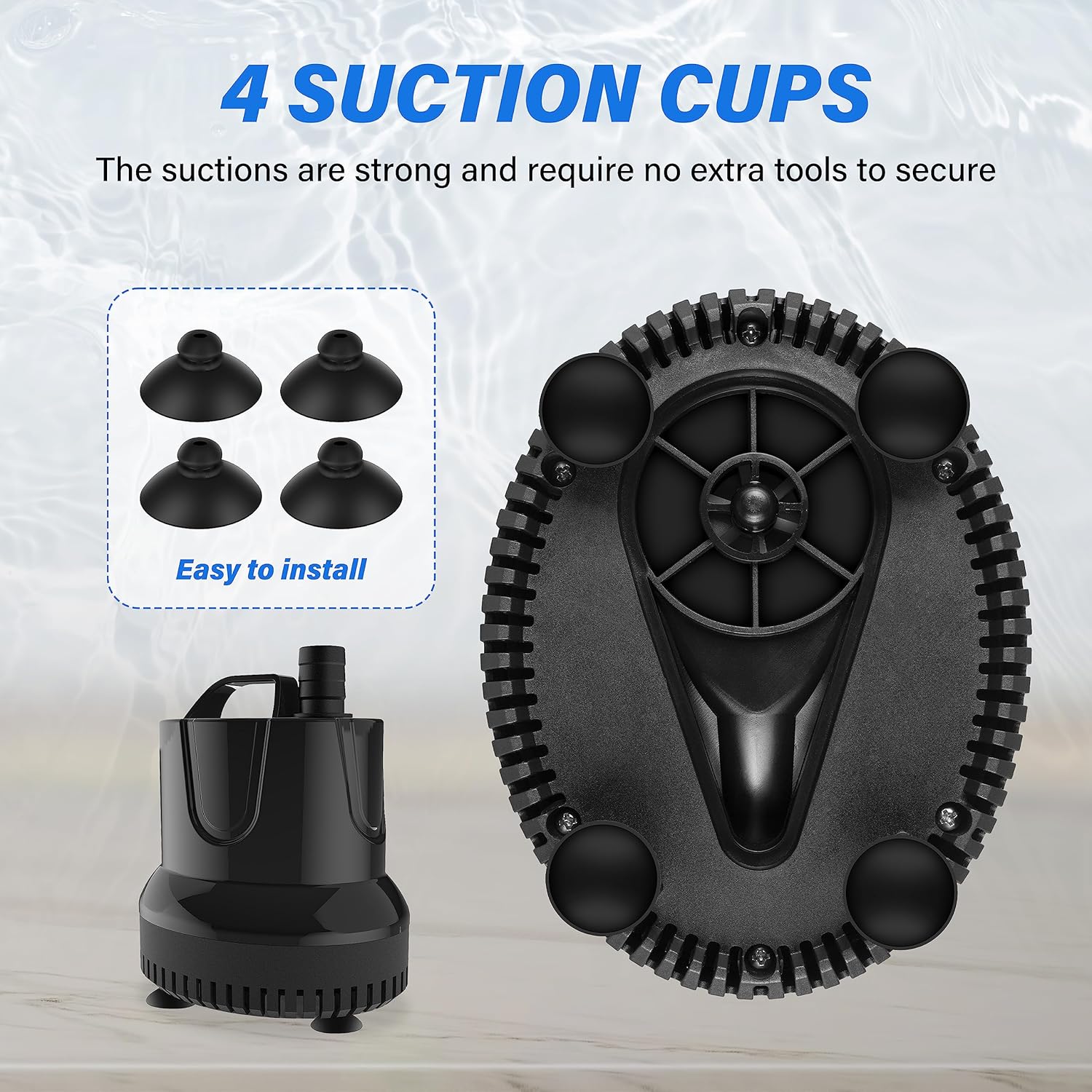 Bottom Suction Design: The bottom suction feature allows the pump to draw water from the bottom of the tank or pond, preventing debris from clogging the pump and ensuring clean water intake for your aquatic setup.