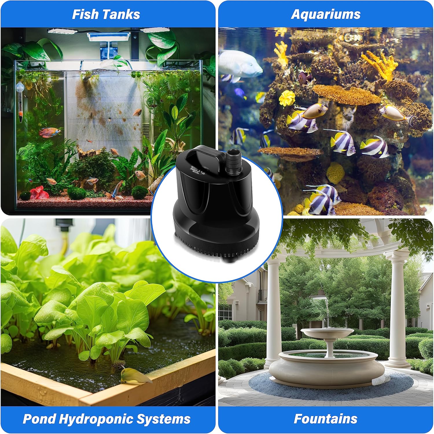 Reliable and Easy to Use: The pump is designed for long-lasting performance and is easy to install and operate. Its submersible design allows for discreet placement, and it requires minimal maintenance, providing hassle-free operation for your aquatic needs.