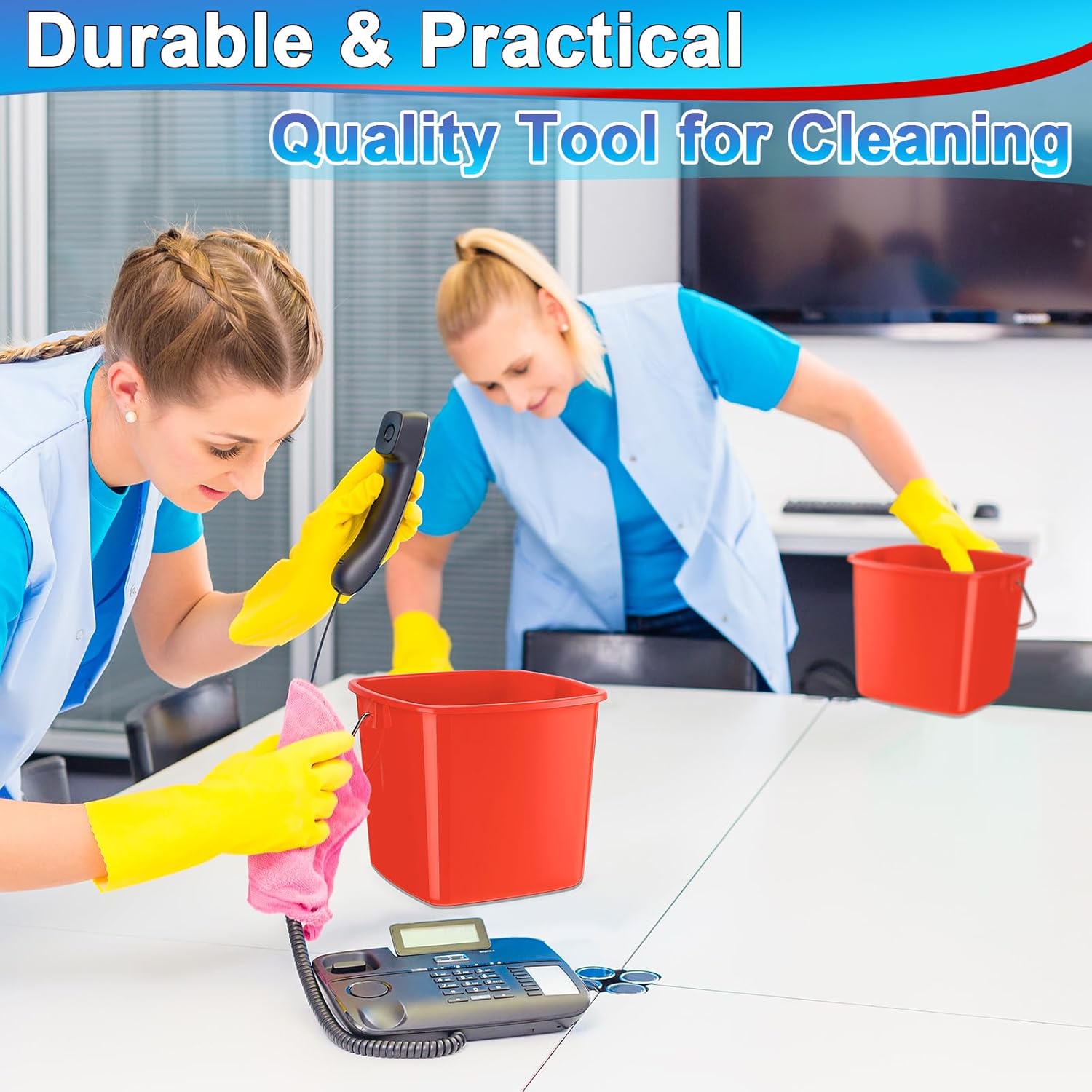 Zhehao 6 Pcs 3 Quart Cleaning Bucket Small Detergent Square Bucket Sanitizing Plastic Pail with Handles Square Cleaning Pail for Home, Offices, School, Commercial Use, Food Service(Red)