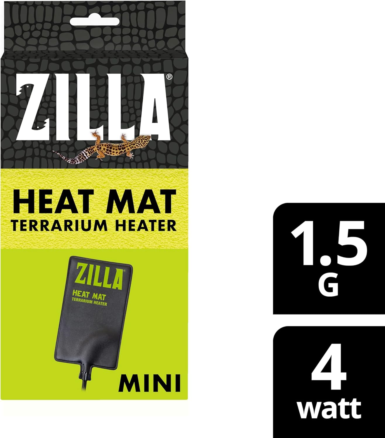Zilla Heat Mat, Terrarium Heater for Reptiles, Snakes (Ball Pythons, Corn Snakes), Leopard Geckos, Tortoises, Amphibians and Arachnids, Mini, Fits 1-5 Gallon, 4 Watt