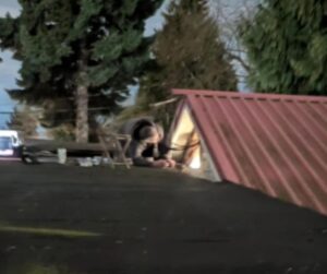 The following day brought more rain and wind. Despite the harsh conditions, Ken climbed back onto the roof once again.