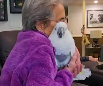 As Deborah prepared to go, Peta climbed onto her walker. She settled there firmly, refusing to move. It was not playful behavior. It felt intentional. As if the bird was gently asking her to stay a little longer.