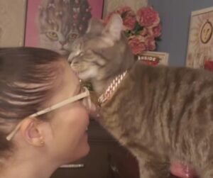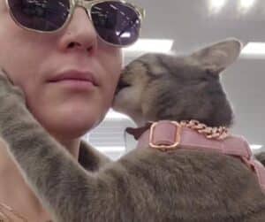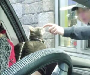 Many cats shy away from busy places or unfamiliar faces. Beef is the complete opposite. He lights up around people. When Candace arrives at familiar spots, employees often recognize them right away. Sometimes they even call out when they see the pair approaching.