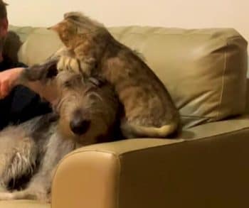 Walter’s soft heart showed itself even more when a rescue cat joined the family. The little cat took one look at him and decided he was hers.